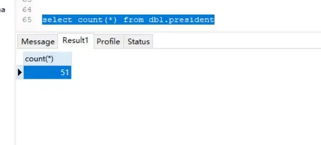 truncate db1.president; -- 删除表内所有记录(保留空表)drop table db1.president; -- 彻底删除表(数据库中该表将不存在)drop table db1.subway; -- 彻底删除表(数据库中该表将不存在)select count(*) from db1.president
