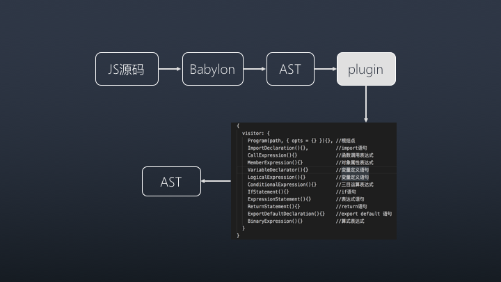 这是一个babel的插件,babel通过核心babylon将ES6代码转换成AST抽象语法树,然后插件遍历语法树找出类似import {Button} from 'element-ui'这样的语句,进行转换,最后重新生成代码。
