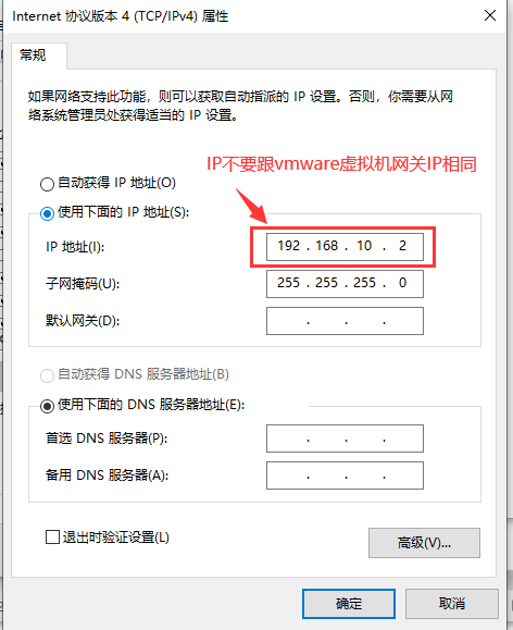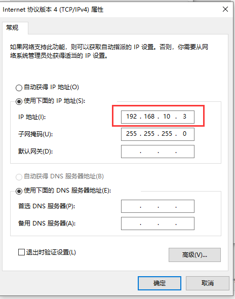 将这个地方的IP地址改成 192.168.10.3或192.168.10.1,只要不是192.168.10.2就行,改后的效果如下图: