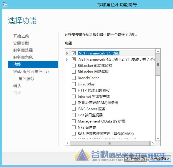 点击[添加功能],然后再点击[下一步],然后勾选[.NET Frameword 3.5 功能 ],如下图所示。