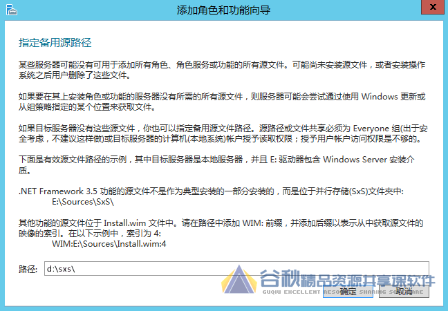 点击[添加功能],继续点击[下一步],这里会提示需要指定备用源路径,点击[指定备用源路径],如果有Windows Server 2012光盘,可在路径里输入: